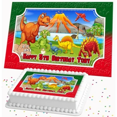 Dinosaur Rectangle Personalised Birthday Edible Icing Costco Cake Topper R1 091 A4