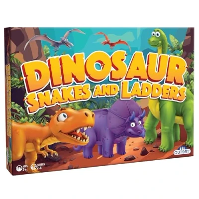 FAMILY GAME NIGHT: The perfect game for a family game night, and no reading skills are required. Simple enough for kids to play on their own, and oodles of fun for adults when they decide to join the action! SIMPLE GAME PLAY: Easy to learn classic game play suitable for 2-6 players Ages 3+. PLAY & LEARN: Helps develop number recognition, basic counting skills, direction/movement comprehension, and social interaction. WHO WINS: Players use their counting skills as they race to be the first to reach the finish line and win the game DINOSAUR TWIST: Kids will enjoy this classic game with a dino theme. Be the first to climb the ladders to the top of the board and reach the hatching baby dinosaur!, Manufacturer: Outset Media
