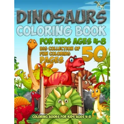 Dinosaurs Coloring book for kids ages 4 8. BIG Collection of 50 fun pages.: books 8