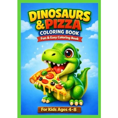 Dinosaurs & pizza Coloring book for Kids ages 4 8: