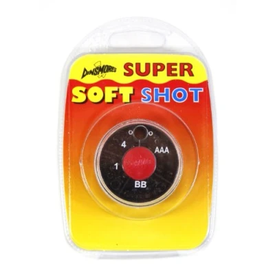 Squeeze with fingers to close shot Slides easily up and down line Location divot, fingernail lead ensures easy opening Available in black colour 4 compartment round dispenser containing sizes: AAA, BB, No1 and No4 super soft shot