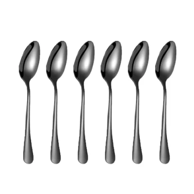 DIOXSTAR 6X Stainless Steel Table Spoon, Dinner Spoons, Soup Dessert Comfortable Grip, Classic Design, Easy to Clean, for Home, Kitchen, 20CM (Metallic Black)