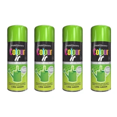 DIOXSTAR Lime Green Spray Paint, Gloss Finish, Quick Drying All Purpose Paint for Metal, Wood, Plastic, Interior & Exterior Use, 400ml (4 PCS)