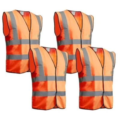 DIOXSTAR Orange Hi Viz Vest Waistcoat, Sleeveless Safety Vest, High Visibility, Suitable for Mechanical, Warehouse, Construction, Velcro Fastening, Black Piping (4 PCS, Large)