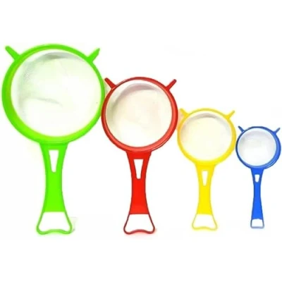 DIOXSTAR Plastic Kitchen Strainer Sieve, Fine Mesh Design, Both Durable and Lightweight, Dishwasher Safe, Smooth Surface Hygienic Easy to Clean, (4 Pcs)