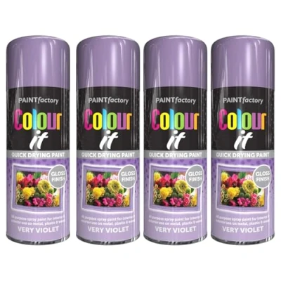 DIOXSTAR Very Violet Gloss Spray Paint, Finish, Quick Drying All Purpose Paint for Metal, Wood, Plastic, Interior & Exterior Use, 400ml (4 PCS)