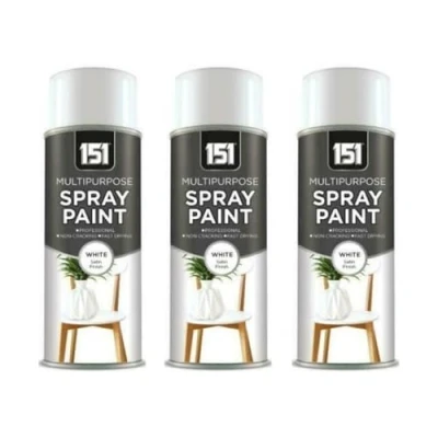 DIOXSTAR White Satin Finish Spray Paint, Fast Drying, Non Cracking, DIY Paint for Metal, Wood, Plastic, Easy to Use, Interior and Exterior 400ml (3 PCS)