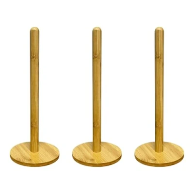 DURABLE AND STURDY CONSTRUCTION: Made from good-quality wood, this paper towel holder is designed to withstand daily use while maintaining its aesthetic appeal. The wooden structure is robust enough to hold standard and large-size rolls, ensuring long-lasting functionality in both kitchen and bathroom environments. STYLISH AND FUNCTIONAL DESIGN: The Wooden Kitchen Paper Towel Holder offers a simple yet elegant design that fits seamlessly into any kitchen or bathroom decor. Its natural wooden finish provides a touch of warmth and minimalism, making it an attractive yet practical addition to countertops or bathroom spaces. ANTI-SLIP BASE FOR STABILITY: The paper towel holder features an anti-slip base, ensuring that it stays securely in place during use. Whether you're pulling a single sheet or several, the stable base prevents unnecessary movement, reducing the chances of tipping over or sliding, which enhances convenience and ease of use. EASY TO REFILL AND USE: With its simple pole and rack design, the holder allows for quick and easy roll replacements. The vertical wooden pole ensures smooth dispensing of paper towels without tugging or tearing, making it effortless to grab paper towels during cooking or cleaning tasks. VERSATILE PLACEMENT AND USE: This wooden roll stand is not only perfect for kitchens but also ideal for bathrooms, workspaces, or craft rooms. Its sleek and compact design fits into various settings, providing an elegant solution for organizing paper towels, tissues, or other rolled products. Its portability makes it easy to move around and use wherever needed, ensuring functionality and style across different spaces.