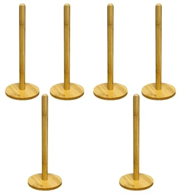 DURABLE AND STURDY CONSTRUCTION: Made from good-quality wood, this paper towel holder is designed to withstand daily use while maintaining its aesthetic appeal. The wooden structure is robust enough to hold standard and large-size rolls, ensuring long-lasting functionality in both kitchen and bathroom environments. STYLISH AND FUNCTIONAL DESIGN: The Wooden Kitchen Paper Towel Holder offers a simple yet elegant design that fits seamlessly into any kitchen or bathroom decor. Its natural wooden finish provides a touch of warmth and minimalism, making it an attractive yet practical addition to countertops or bathroom spaces. ANTI-SLIP BASE FOR STABILITY: The paper towel holder features an anti-slip base, ensuring that it stays securely in place during use. Whether you're pulling a single sheet or several, the stable base prevents unnecessary movement, reducing the chances of tipping over or sliding, which enhances convenience and ease of use. EASY TO REFILL AND USE: With its simple pole and rack design, the holder allows for quick and easy roll replacements. The vertical wooden pole ensures smooth dispensing of paper towels without tugging or tearing, making it effortless to grab paper towels during cooking or cleaning tasks. VERSATILE PLACEMENT AND USE: This wooden roll stand is not only perfect for kitchens but also ideal for bathrooms, workspaces, or craft rooms. Its sleek and compact design fits into various settings, providing an elegant solution for organizing paper towels, tissues, or other rolled products. Its portability makes it easy to move around and use wherever needed, ensuring functionality and style across different spaces.