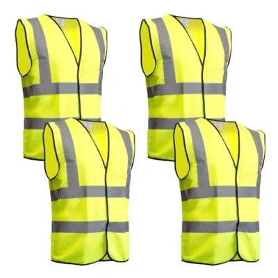 DIOXSTAR Yellow Hi Viz Vest Waistcoat, Sleeveless Safety Vest, High Visibility, Suitable for Mechanical, Warehouse, Construction, Velcro Fastening, Black Piping (4 PCS, Small)