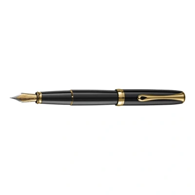 Diplomat Excellence A2 Fountain Pen in Stainless Steel Medium Black Lacquer & Gold Resistant and Elegant High End 5 Years Warranty, D40203025