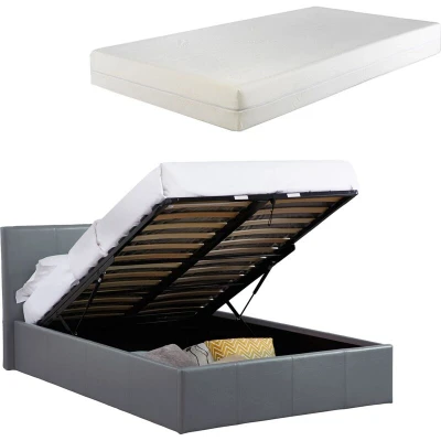4ft Luna Siesta Ottoman Bed Frame & 8-inch Memory Foam Mattress - Practical Storage & Luxurious Comfort The Luna Siesta Ottoman Bed Frame maximizes your bedroom space by transforming unused space into valuable storage. Under the slatted base, which can be easily lifted, you'll find a generous storage area-perfect for stowing away extra bedding, clothes, or other items. Equipped with a gas-lift mechanism, lifting the bed is effortless, providing you with quick and easy access to the under-bed storage without requiring excessive strength. The bed features a sturdy metal frame, finished in high-quality faux leather, with elegant stitch detailing on both the headboard and footboard. Key Features: Durable Faux Leather Finish: High-quality, long-lasting faux leather with elegant stitch detailing. Under-Bed Storage: Ideal for storing extra items and maximizing available space. Gas-Lift Mechanism: Easily lifts the bed for convenient storage access. Frame Stays Open Independently: Hands-free