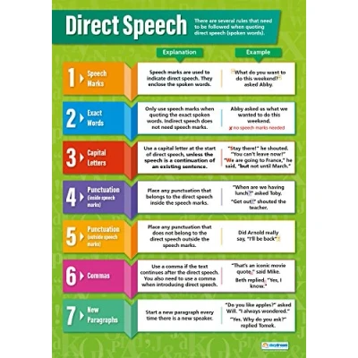 Direct Speech English Posters Laminated Gloss Paper measuring 850mm x 594mm (A1) Language Classroom Education Charts by Daydream