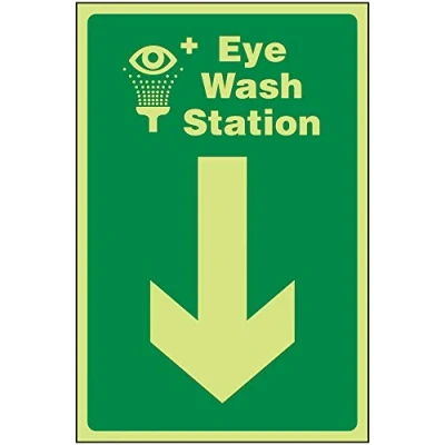 Directional FA Eye Wash Station Arrow Down 300x400mm GITD Rigid Plastic