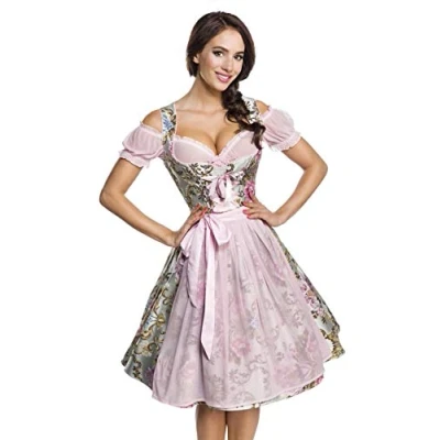 Dirndline Women's Premium Brocade Dirndl Including Blouse Dress for Special Occasions, Pink/Patterned, XXXL