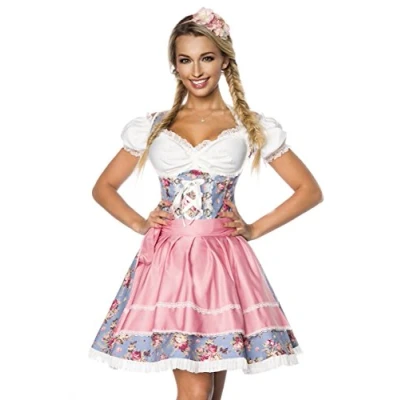 Dirndline Women's Premium Dirndl with Blouse Special Occasion Dress, Blue/Pink/White, 3XL