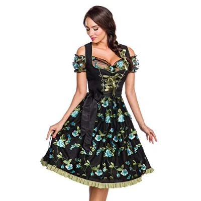 Dirndline Women's Dirndl with Lace Shirt Special Occasion Dress, Black/Green, XXL