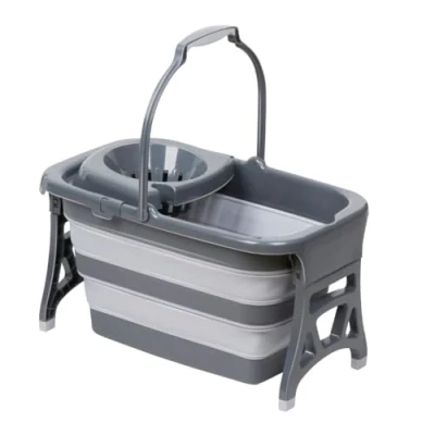 Foldable mop bucket: compact design folds up and fits in small cupboards or storage rooms - ideal for households with little storage space. 20 litre capacity – large volume for longer cleaning jobs without frequent refilling - ideal for large rooms or multiple rooms. With wringer – the integrated wringer allows quick squeezing without wet hands – hygienic, practical and efficient when cleaning. Sturdy carrying handle – robust handle ensures safe transport, even when fully water level – convenient to carry between rooms or floors. Versatile – suitable for tiles, laminate, parquet and other types of floors - a flexible helper for the entire household.