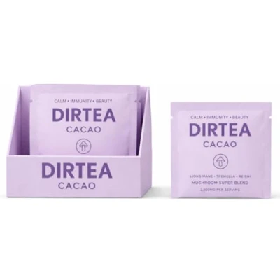 DECADENT TASTE, NO ADDED SUGAR: Our DIRTEA Cacao is a rich, smooth flavour with zero sugar. Smooth, warming, and easy to enjoy any time of day. FIND BALANCE AND CALMNESS: Our DIRTEA healthy hot chocolate combines the euphoric benefits of cacao with potent Reishi mushroom extract to promote wellness and your immune system PURE & 100% ORGANIC: Crafted with 100% organic, dual-extracted mushrooms and ingredients. No fillers. Third-party tested for quality, purity, and consistency in every cup. NATURAL SOURCE OF VITAMIN B12: Our DIRTEA Cacao contains whole food-sourced B12 from chlorella, which contributes to psychological function, immune health, and energy metabolism. "SIMPLE TO PREPARE: Add 6g of our Cacao powder to a cup and add hot water. Stir well and top up with milk, if desired and enjoy as part of your daily routine.