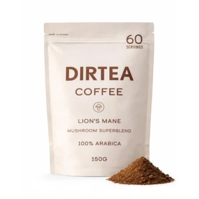 GREAT TASTE, LESS CAFFEINE: Enjoy the rich flavour of coffee with 80% less caffeine than regular coffee. Our blend has a smooth, balanced brew that costs just 67p per cup. ENRICHED WITH VITAMIN B: DIRTEA Coffee is fortified with an organic B vitamin complex, including B6, B12, pantothenic acid, and folic acid. Nothing synthetic added. BE MORE PRODUCTIVE: DIRTEA Coffee is made with 100% organic arabica coffee and high-quality Lion's Mane containing >40% Beta Glucans. It is known as the Focus Mushroom, great for enhancing oyur productivity and supporting your alertness in the mornings. PURE & 100% ORGANIC: Crafted with 100% organic, dual-extracted mushrooms and ingredients. No fillers. Third-party tested for quality, purity, and consistency in every cup. SIMPLE TO PREPARE: Mix 2.5g of DIRTEA Mushroom Coffee powder with hot water or your favourite milk. Stir well and enjoy a soothing, functional drink for mornings or mindful breaks.