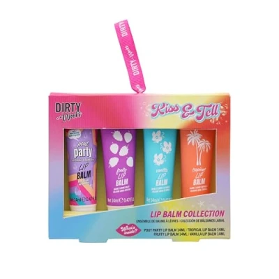 Dirty Works Kiss & Tell Lip Balm Collection 4 Flavoured Balms Gift Set Nourishing Care for Women