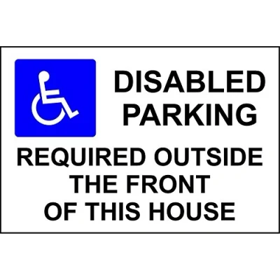 Disabled Parking Required Outside The Front Of This House safety sign 3mm Aluminium 300mm x 200mm
