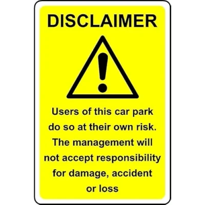 Disclaimer Users of This car Park do so at Their own Risk Safety Sign 1mm Plastic (400mm x 300mm)