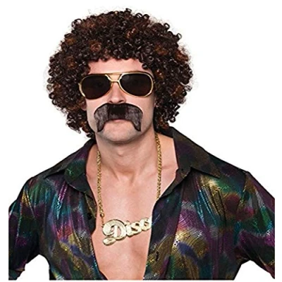 Package Includes: 1 x wig, 1 x mustache Product features mix of black and brown hair styled to get that loose afro look while the matching mustache comes with downward ends. Perfect for retro-themed parties, halloween, costume parties and other events. Made of synthetic fiber, Manufacturer: amscan
