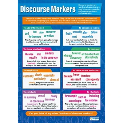 Discourse Markers English Posters Laminated Gloss Paper measuring 850mm x 594mm (A1) Language Classroom Education Charts by Daydream