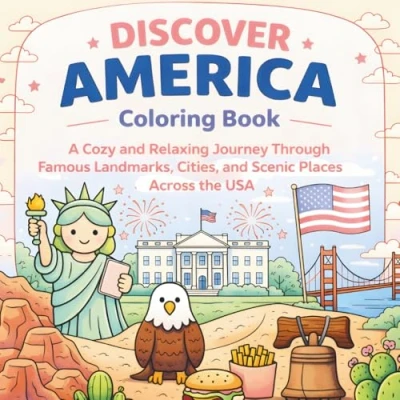 Discover America Coloring Book: A Cozy and Relaxing Journey Through Famous Landmarks, Cities, Scenic Places Across the USA
