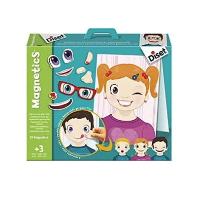 Product Description A magnetic game for boys and girls. The game consists of combining the different elements to create different faces and expressions. Minimum age: 3 years Measures 13.2 x 10.3 x 2 inches Package Contents: 1 x double-sided magnetic easel (boys/girls), 2 boards with eye, mouth, nostrils... magnetic for shaping different faces., Manufacturer: DISET