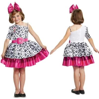 Official LOL Dolls License: This Diva Classic Costume is officially licensed by LOL Dolls, bringing the popular and fashionable Diva character to life for young fans Complete Diva Look: The costume includes a black and white leopard print dress with pink details, paired with a cute pink bow headband, capturing Diva's bold and stylish style Ideal for Girls: Designed specifically for girls, this costume is available in sizes XS-M, providing a comfortable and age-appropriate fit for young fashionistas Ideal for Fancy Dress and Imaginative Play: Whether for Halloween, LOL Dolls themed parties, or imaginative play, this outfit lets girls step into the world of LOL Dolls and showcase their inner Diva Durable and Comfortable: Made from soft, durable materials, the costume ensures comfort and flexibility, allowing girls to move freely while enjoying hours of play and fun, Manufacturer: Disguise