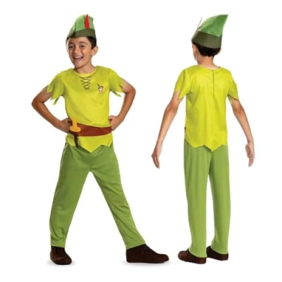 GET INTO CHARACTER: When your little one puts on this Peter Pan Costume, their imagination will leap into Neverland. MAGICAL FEATURES: This charming Peter Pan Classic costume features Peter Pan’s signature green outfit, with stylish zig-zag sleeves, the iconic green cap, a belt containing a soft knife, and a picture of Peter Pan himself on the shirt! OFFICIALLY LICENSED: Be ready for your adventures in Neverland with this Disney Officially Licenced, unique fancy dress number. INSPIRES IMAGINATIVE PLAY: This costume is perfect for Halloween, World Book Day and Fancy Dress Parties. MULTIPLE KIDS SIZES AVAILABLE: Available in sizes 5-6, 7-8., Manufacturer: Disguise