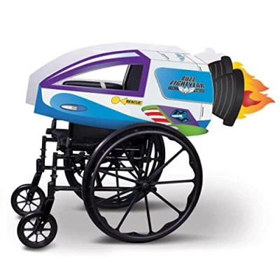 OFFICIALLY LICENSED BUZZ LIGHTYEAR WHEELCHAIR COSTUMES FOR KIDS - Blast into infinity and beyond in our Buzz Lightyear Spaceship Adaptive Wheelchair Cover! AUTHENTIC TOY STORY WHEELCHAIR COVER - Features the art of Buzz Lightyear's spaceship throughout and comes with 2 felt car pieces and 16 support bar EASY TO ASSEMBLE COSTUMES FOR WHEELCHAIR - Each piece can be easily put together by inserting support bars and attaching them to the wheelchair with the fabric strips INSPIRED PIXAR COSTUMES FOR WHEELCHAIRS - Pair this with our Buzz Lightyear adaptive costume to complete the full look and defeat Emperor Zurg!, Manufacturer: Disguise