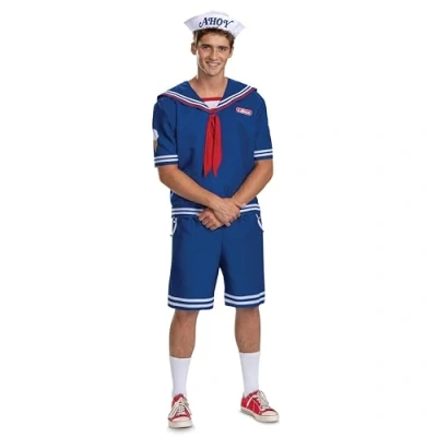 Disguise Stranger Things Steve Scoops Ahoy Costume, Official Costume with Top and Hat, Adult Size (50 52)