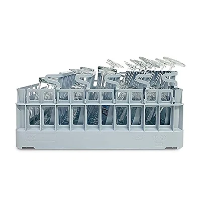 500mm glasswasher basket with 5 reclining rows to stack glasses with a slight vertical lean, significantly improving wash results whilst reducing breakages. External Dimensions: L500xW500mm | Internal Dimensions: H460xW460mm | Capacity: 25 Glasses | Number of Rows: 5 | Row Width: Row 1 = 95mm, Rows 2-4 = 75mm Holds 25 Pint Glasses ✓ Professional Quality ✓ Heavy Duty ✓ Lightweight & Durable ✓ Wide Mesh ✓ Great for washing Champagne Flues, Wine Glasses and Thin / Tall Pint Glasses Used in 500mm commercial dishwashers in bars, restaurants and pubs. Sold By Caterbox the UK's Dishwasher Rack & Catering Equipment Storage Specialist