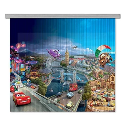 The original story of Disney, stops 70% of light and 100% of UV radiation, unsurpassed quality of decoration, recommended for children's rooms, 100% produced in EU The modern size is 180 x 160 cm, 2 parts, ideal for windows above the table, sofa, chest of drawers, instantly fixed on all types of curtain rods 100% eco-friendly PES, does not contain substances hazardous to humans, does not accumulate dust, does not accumulate moisture, is indispensable for children and allergic persons, does not fade, certificated No problems with maintenance, easy to wash, clean (instructions on the package), 10 plastic grey hooks for mounting system are included Cars world race, on the background of world capitals, immediately and modernly transform the interior of the children's room, relieve from solar radiation and indiscreet views. Make your child happy, make a great gift! Grow with Walt Disney!