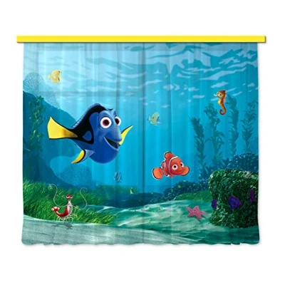 The original story of Disney, stops 70% of light and 100% of UV radiation, unsurpassed quality of decoration, recommended for children's rooms, 100% produced in the EU The modern size is 180 x 160 cm, 2 parts, ideal for windows above the table, sofa, chest of drawers, instantly fixed on all types of curtain rods 100% eco-friendly PES, does not contain substances hazardous to humans, does not accumulate dust, does not accumulate moisture, is indispensable for children and allergic persons, does not fade, certificated No problems with maintenance, easy to wash, clean (instructions on the package), 10 plastic grey hooks for mounting system are included Dory and Nemo on a walk in the underwater world of Disney, immediately and modernly transform the interior of the children's room, relieve from solar radiation and indiscreet views. Delight your child, make a great gift! Grow with Walt Disney!