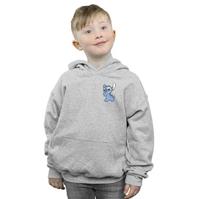 Disney Boys Lilo And Stitch Backside Breast Print Hoodie Sport Grey 7 8 Years