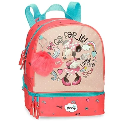 Backpack 23 cm x 28 cm x 13 cm made of microfibre. Large main compartment with zip Compartment on the bottom with thermal lining to keep food cold or warm. Adjustable straps and top handle for convenient carrying. Decorative key bobble