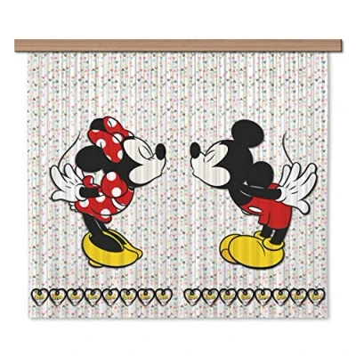 The original story of Disney, stops 70% of light and 100% of UV radiation, unsurpassed quality of decoration, recommended for children's rooms, 100% produced in the EU The modern size is 180 x 160 cm, 2 parts, ideal for windows above the table, sofa, chest of drawers, instantly fixed on all types of curtain rods 100% eco-friendly PES, does not contain substances hazardous to humans, does not accumulate dust, does not accumulate moisture, is indispensable for children and allergic persons, does not fade, certificated No problems with maintenance, easy to wash, clean (instructions on the package), 10 plastic grey hooks for mounting system are included Mickey Mouse and Minnie Mouse, against the backdrop of classic Disney ornaments, immediately and modernly transform the interior of the children's room, relieve from solar radiation and indiscreet views. Make your child happy, make a great gift! Grow with Walt Disney!