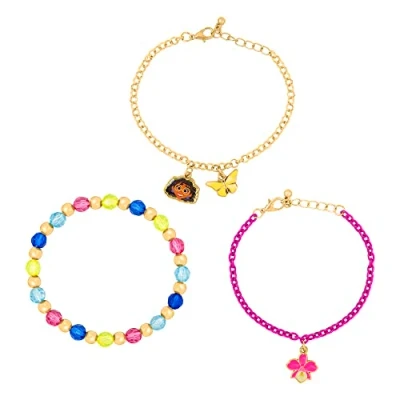 3 Piece bracelet set Beaded Bracelet Mirabel, Flower & butterfly charms