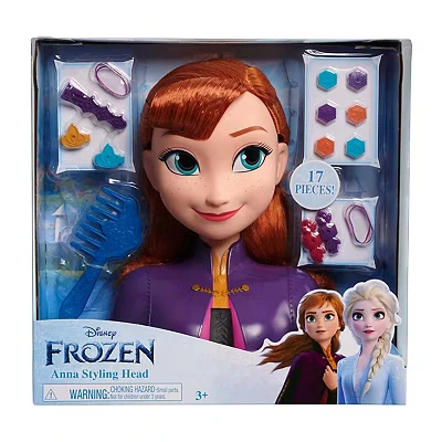 The Disney’S Frozen 2 Anna Styling Head Has So Many Hair Play Possibilities! Anna Features Her Iconic, Shiny Red Hair That Is Perfect For Brushing And Styling. The Styling Head Includes 17 Fun, Wear And Share Accessories, Including One Hair Comb, Three Hair Barrettes, Two Hair Spirals, Four Hair Elastics, And 6 Plug In Gems. Your Little One Will Love Brushing Anna’S Hair Then Using The Adorable Hair Clips To Style And Decorate Anna’S Shiny, Flowing Locks. Ages 3+