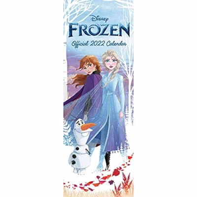 12 DIFFERENT IMAGES OF SCENES FROM FROZEN - the long, slim wall calendar is printed on fine art quality paper with a new image for every month MONTH TO A VIEW PLANNER - lets you see the whole month at a time, with enough space to write down appointments, dates, special events or make a note of important birthdays GENUINE ARTWORK FROM THE CLASSIC DISNEY FILM - enchanting authentic drawings of Elsa, Anna, Olaf and Kristoff from the original 2013 Walt Disney film GREAT GIFT FOR FROZEN FANS OF ALL AGES - anyone who loves the tale of the lonely princess who turns everything to ice and her long-lost sister will get a year of enjoyment from this high quality calendar GENUINE DISNEY MERCHANDISE - officially licenced and approved by the Disney Corporation, it looks great hung in your kitchen, playroom or hallway