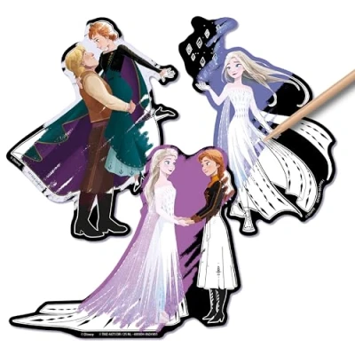CREATIVE DESIGN: Disney Frozen-themed scratch art stickers featuring magical character designs and scenes from the beloved animated film ARTISTIC ACTIVITY: Reveal colourful patterns beneath the black coating by scratching with the included wooden stylus tool COMPLETE SET: Multiple sticker designs showcasing iconic characters and moments, perfect for decorating and creative play EASY TO USE: Simple scratch-and-reveal technique makes it engaging for children of all ages to create personalised artwork PORTABLE FORMAT: Compact sticker set design allows for convenient creative play at home, during travel, or anywhere inspiration strikes, Manufacturer: TM Essentials