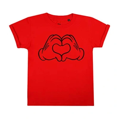 Disney Girl's Mickey Mouse Love Hands T Shirt, Red (Red Red), 9 Years UK