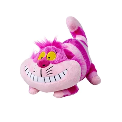 The fun Cheshire Cat is known from the Disney film "Alice in Wonderland" and has become a popular character With the 25 cm large plush toy, you can now be super cuddled and cuddled The pink striped cat in lying pose comes with a wide grin and immediately puts a smile on the face The plush toy is made of cuddly soft plush and also looks great as a decoration on the sofa Suitable for children from the first months of life