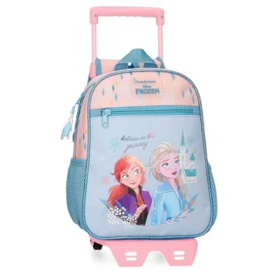 Disney Joumma Bags, Frozen Believe in the journey, children's backpack, school bag, made of polyester, wide and adjustable straps, several pockets compartments., blue, Backpack 28 + Trolley