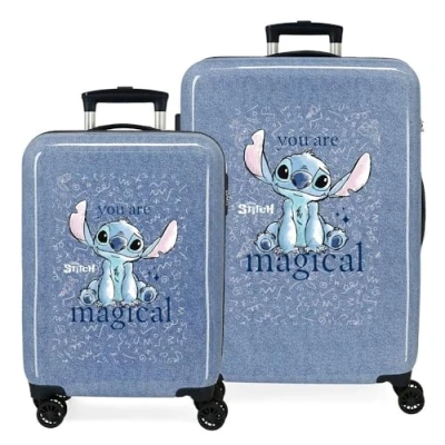 Disney Joumma Stitch You are Magical Suitcase Set Blue 55/65 cm Rigid 6 kg Combination Lock Side ABS 91L Hand Luggage, Blue, One Size,