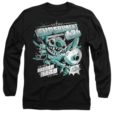 Disney Lilo and Stitch Experimen Unisex Long Sleeve T Shirt, Black, Medium